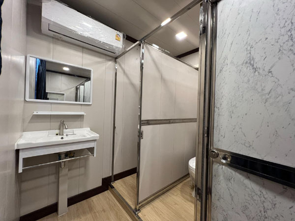 - เช่าห้องน้ำสำเร็จรูปเคลื่อนที่แบบ VIP (ภายในมีอ่างล้างมือ กระจก แสงสว่าง)